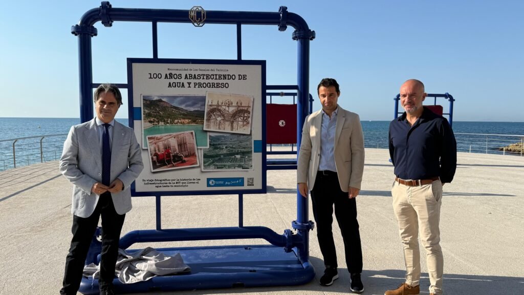 Titled “Mancomunidad de los Canales del Taibilla: 100 Years of Supplying Water and Progress”, the exhibition showcases the institution’s history ahead of its centenary. Organised by the MCT, it consists of twelve 120×120 cm panels that outline key milestones from its founding on October 4, 1927, to the present day. It features pivotal moments such as the construction of major hydraulic infrastructures and the extension of water services to municipalities across the region.