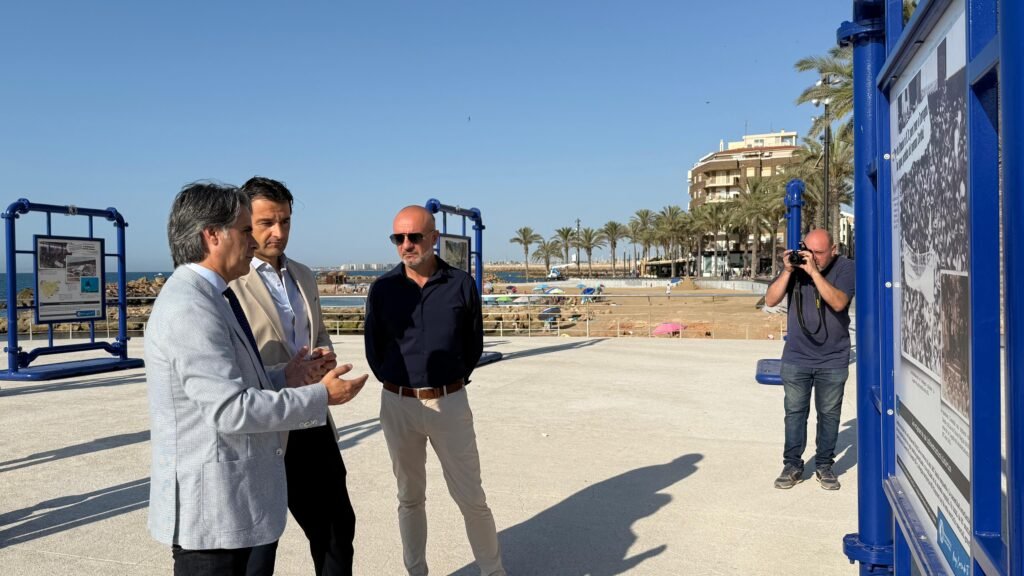 The mayor of Torrevieja, Eduardo Dolón, together with Juan Cascales, president of the Mancomunidad de los Canales del Taibilla (MCT), and the councillor for Culture, Antonio Quesada, officially opened a new travelling photo exhibition this morning at the scenic lookout near the former Tintero on Playa del Cura.