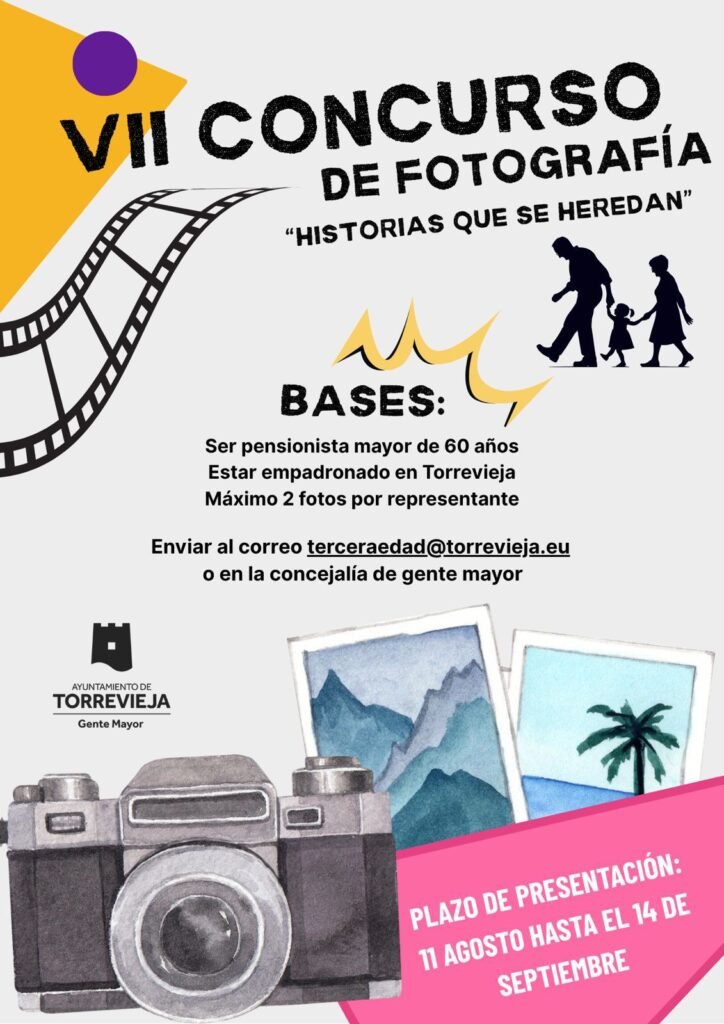 The Torrevieja City Council has opened submissions for the 7th “Homenaje al Mayor” Photography Contest, running until September 14. This year’s theme, “Stories That Are Inherited,” invites pensioners over 60 years old, registered in Torrevieja, to capture everyday moments shared between seniors and younger generations.