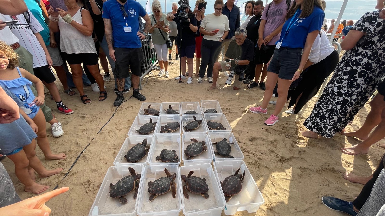A year after hatching on Los Locos Beach, the young turtles re-enter the sea as part of the Oceanogràfic Foundation’s conservation program.